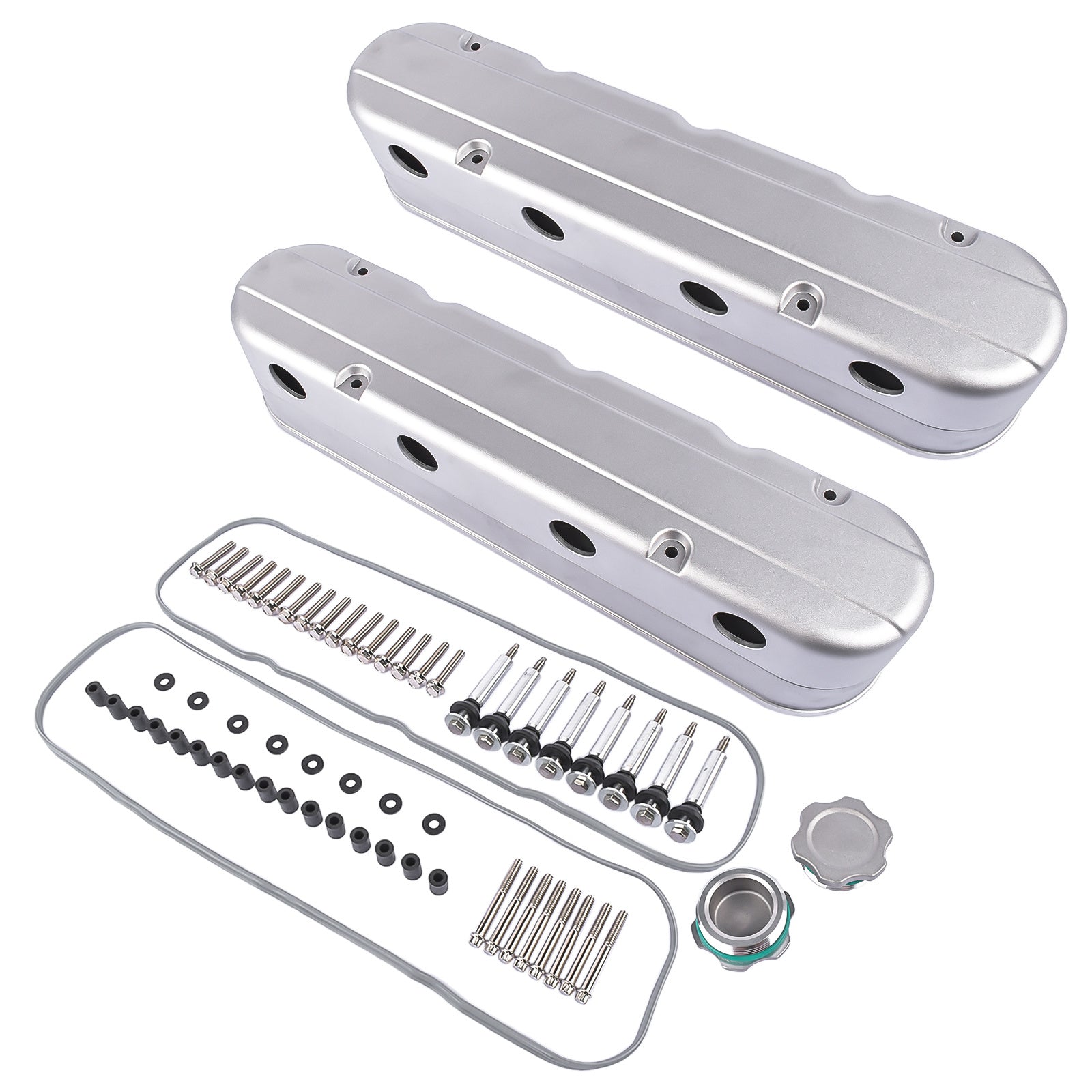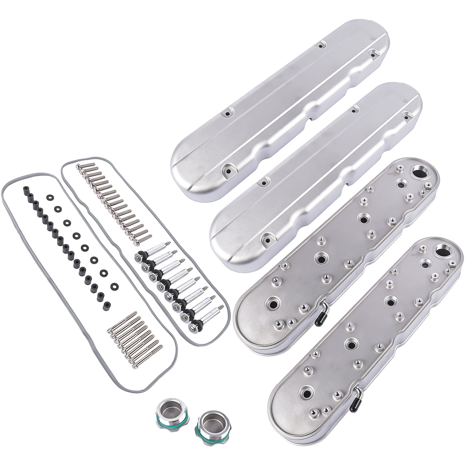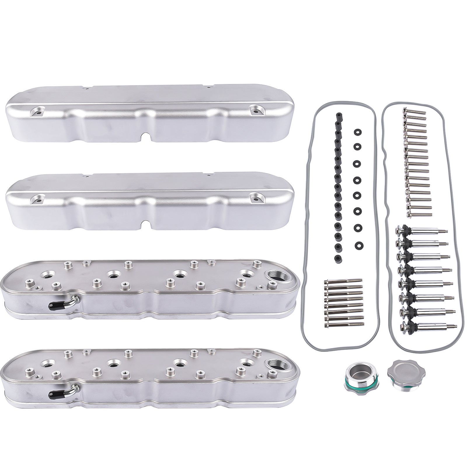 2pcs LS Smooth Cast Valve Covers with Coil Mounts, Replacement for Chevy Small Block SB V8 293 325 346 350 364 376 427 - OEM Compatible Part Numbers 8082-3S, 8082-3, JM8082-3, JM8082-3S