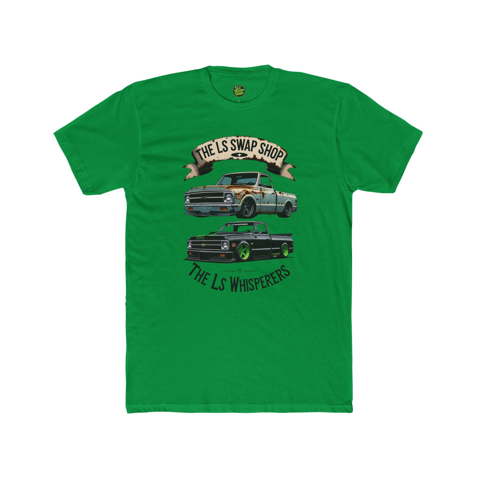 Bring a classic back to life with The LS Whisperers Tee. Featuring a dirty, barn-find ’69 C10 above its fully restored, slammed, neon-green monster twin, this shirt is pure LS Swap Shop energy. Perfect for car guys who know every project has two stages: rusty dream → race-ready machine.