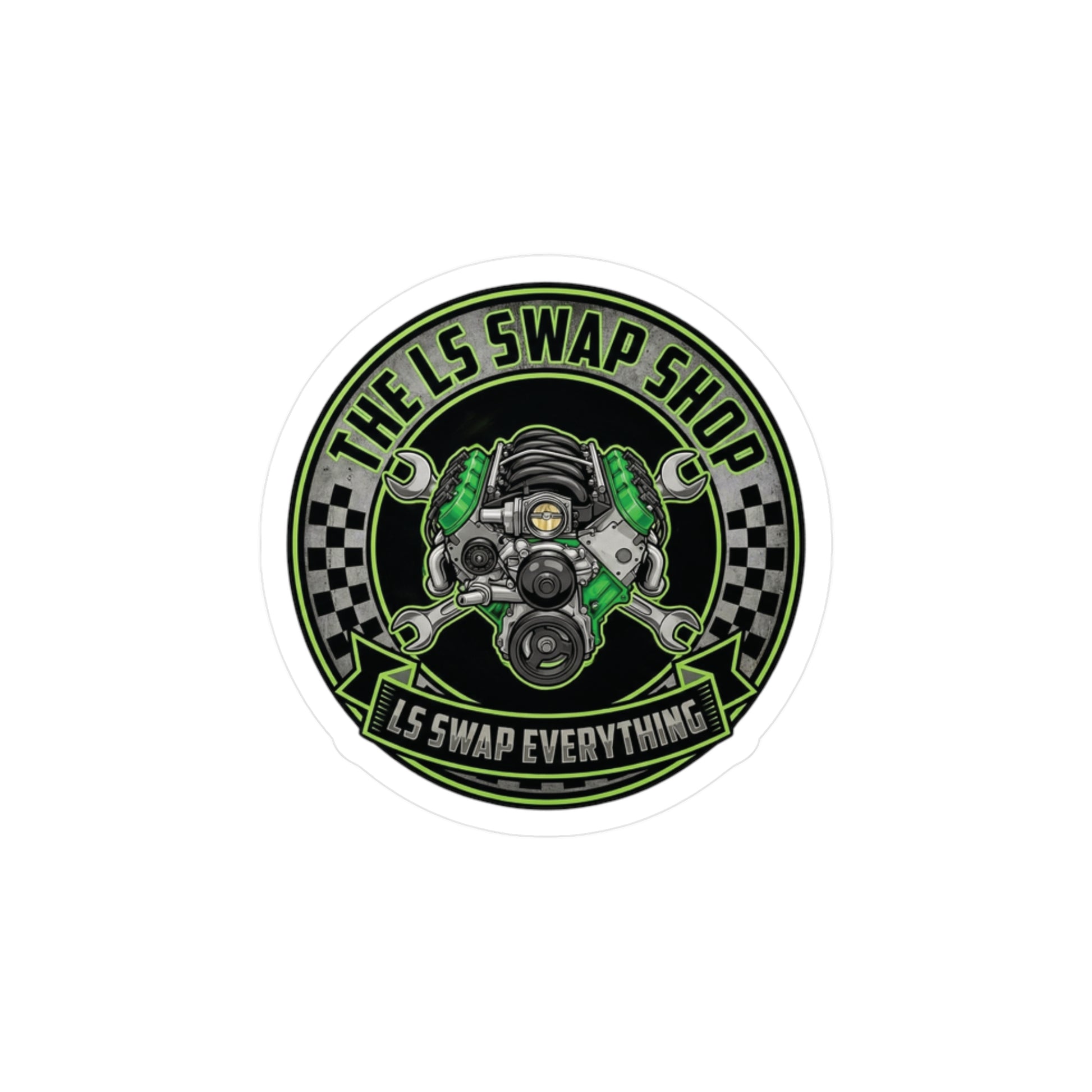 A bold, automotive-inspired vinyl decal that puts the LS Swap Shop mark front and center. The sticker features a detailed Mighty GM LS engine illustration with “LS swap everything” neatly lettered beneath — a clean emblem for enthusiasts who live and breathe engine swaps. The satin white vinyl keeps colors vibrant while muting glare, and the kiss-cut border makes peeling and applying a breeze. Weatherproof and scratch-resistant, this decal clings confidently to toolboxes, car windows, helmets, and trailer doors, holding its look through rain, sun, and grease-stained hands. It’s assembled in the USA and built to handle the hands-on life of the garage and track, keeping that LS pride visible wherever you roll.