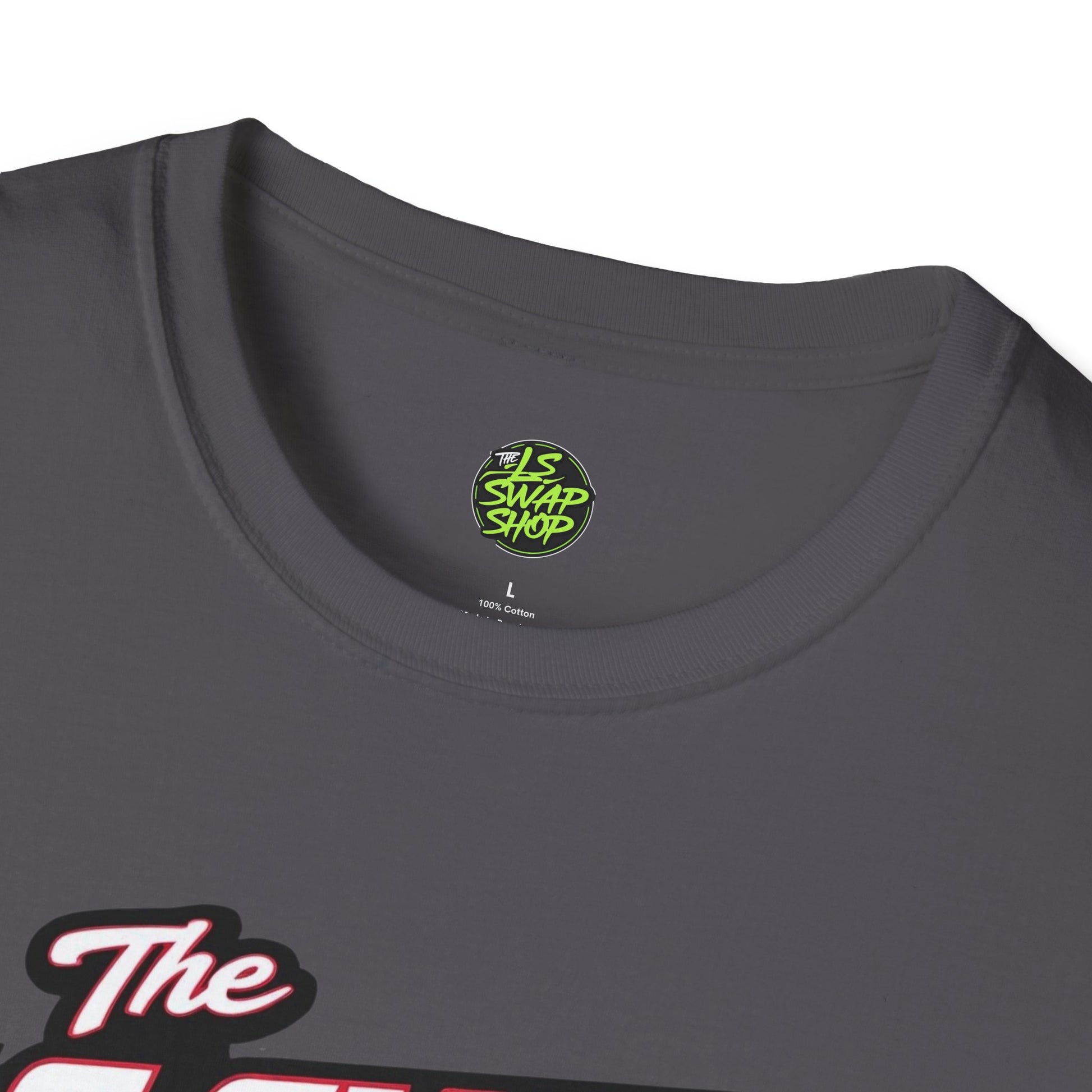 This one’s for the builders who appreciate the art of the clean swap. Featuring a Chevy blue ‘55 Bel Air with just the right stance, chrome restomod wheels, and no wild paint — just timeless vibes. Topped with “The LS Swap Shop” and our gospel underneath: “LS Swap Everything.”