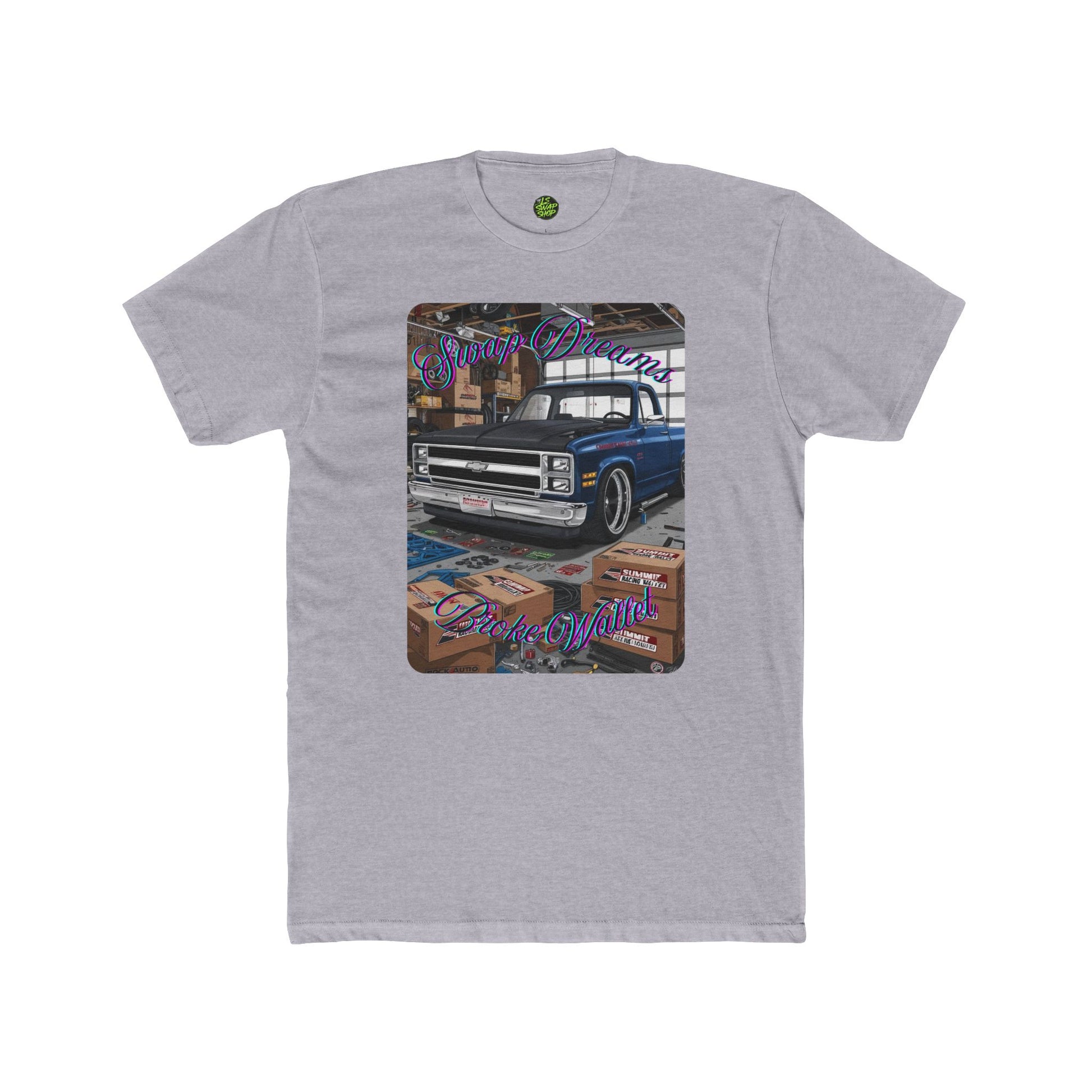 This design showcases a slammed C10 mid-swap in a garage full of parts, tools, and broken promises — the classic car guy tornado. If you’ve ever told yourself, “It’ll be back on the road next month” for the past 11 months… this shirt understands you.